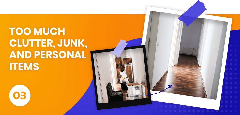 One of the worst kinds of listing photos features a cluttered house. Papers on the side of the refrigerator, groceries and food items on the kitchen counter, unmade beds, clothing on chairs, personal belongings like diplomas and other memorabilia still on display—you name it.