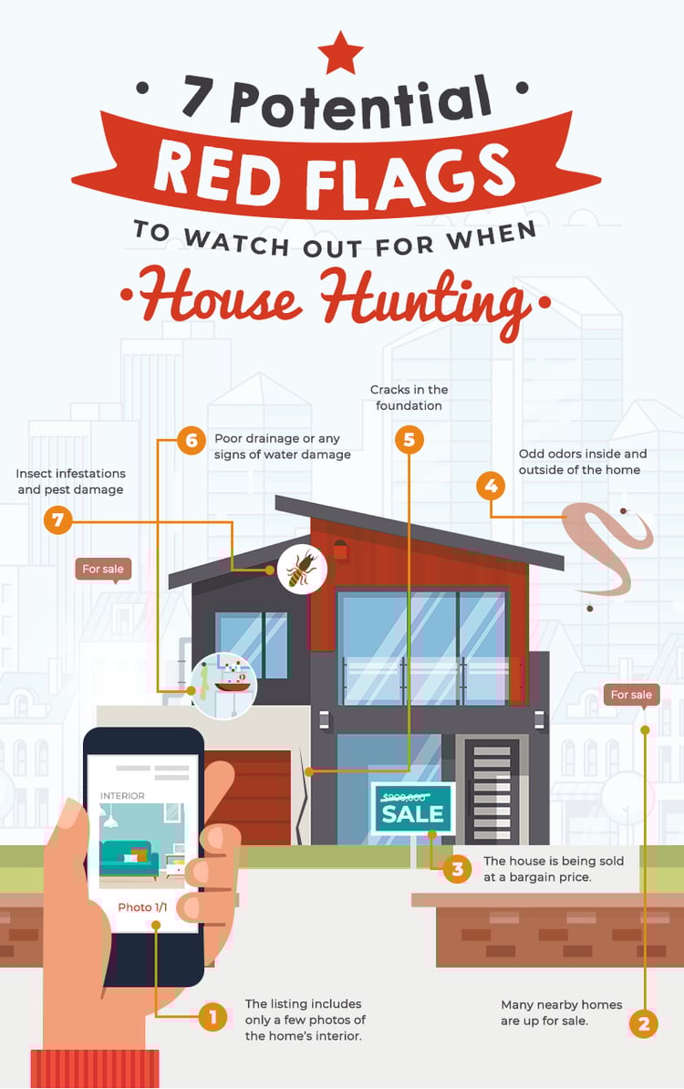 Whether it's the location, the price, or other details that could be signs of potential red flags, it’s important to be vigilant when touring and looking at properties. It won’t be practical to spend for an inspection on every home you tour, so it’s essential to be aware of any warning signs as you’re house hunting.