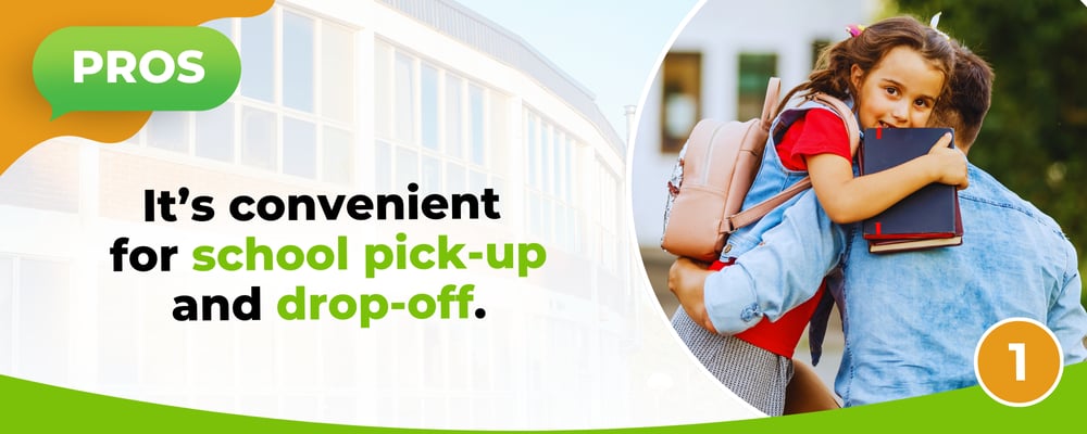 As with any location, living near a school or within a school district has its pros and cons. Can you tolerate the noise levels and prioritize safety for your kids? Will you be okay even if there isn't enough parking space? Do your homework and weigh all of the pros and cons carefully before making your decision.