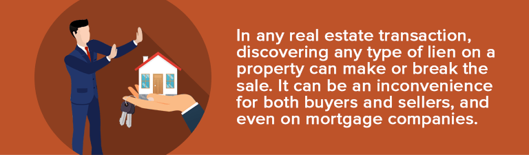 • If you're the seller, it can be very difficult to sell your property because buyers won’t purchase a home without a clear title. As previously mentioned, lenders won’t approve the purchase nor agree to finance the property. Certainly, it is your responsibility to pay off the lien on your property before you may be able to sell.