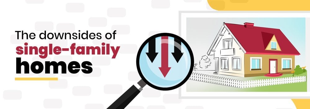 Single-family homes are more expensive since you're buying an entire lot. And with a higher purchase price comes the need for a larger down payment, closing costs, and recurring expenses such as property taxes and homeowners insurance.